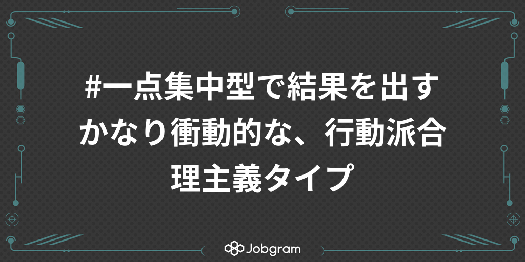 #一点集中型で結果を出すかなり衝動的な、行動派合理主義タイプ