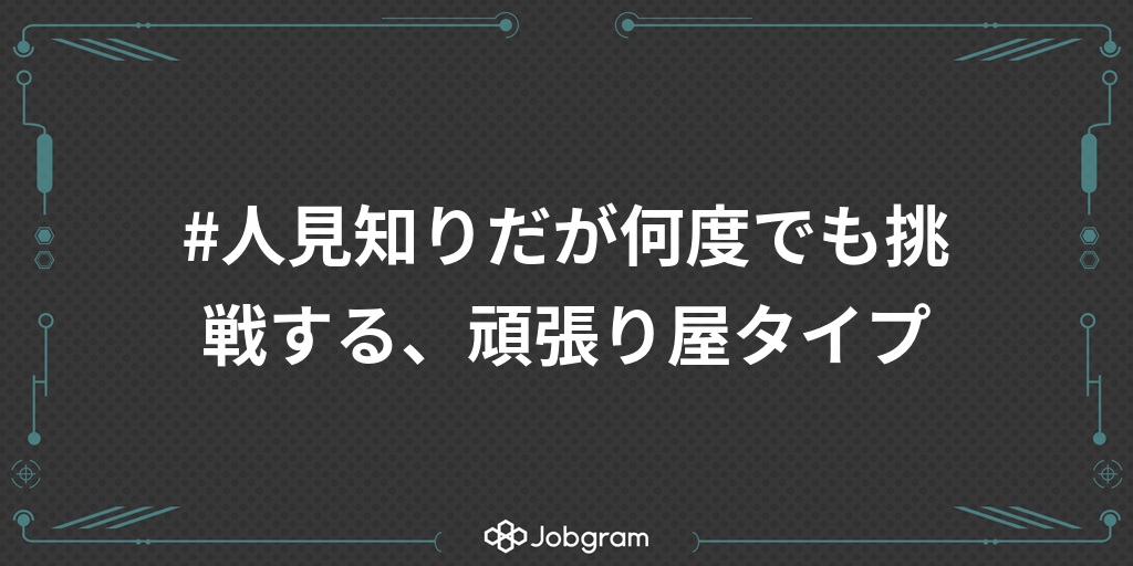 #人見知りだが何度でも挑戦する、頑張り屋タイプ