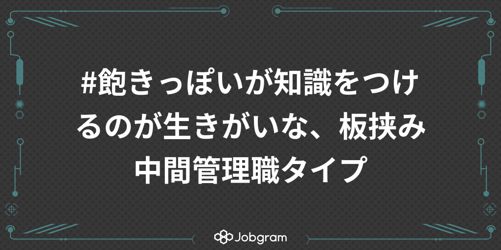 #飽きっぽいが知識をつけるのが生きがいな、板挟み中間管理職タイプ