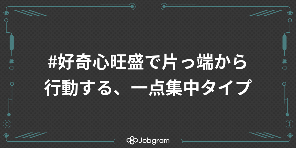 #好奇心旺盛で片っ端から行動する、一点集中タイプ
